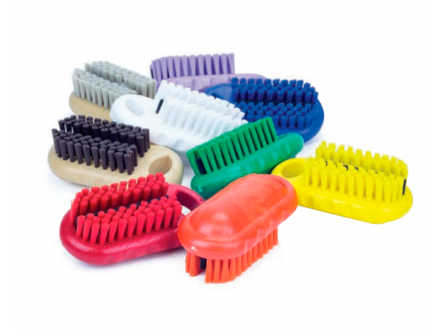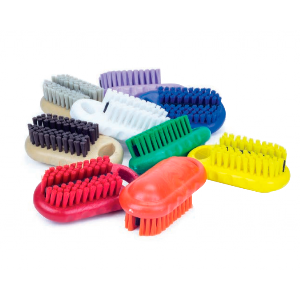Cepillo para limpieza de manos y uñas, fabricado con block de polipropileno estructural y fibras de PBT de rigidez media. Cuenta con una línea central de fibras de mayor rigidez en color negro para facilitar la limpieza profunda de uñas. (12,7 cm de longitud).