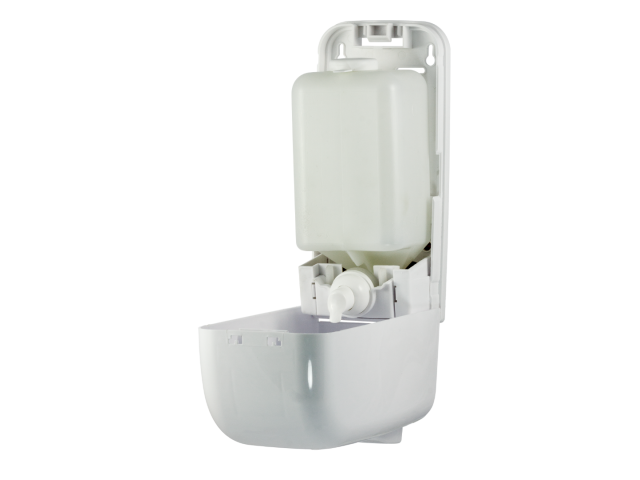 Dispensador para jabón y alcohol de recarga superior con válvula spray.